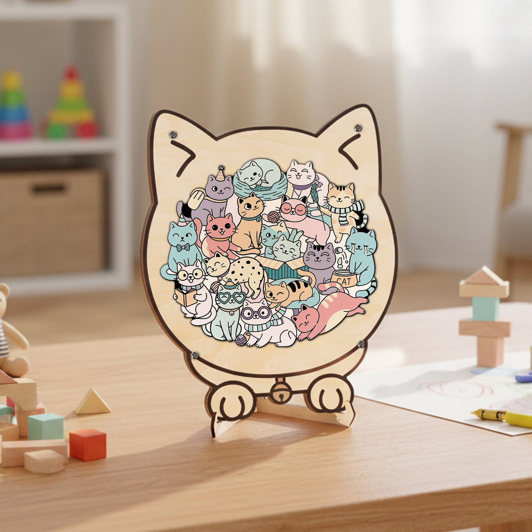 Wooden Kids Jigsaw Puzzle Cat Shaped Montessori Puzzle