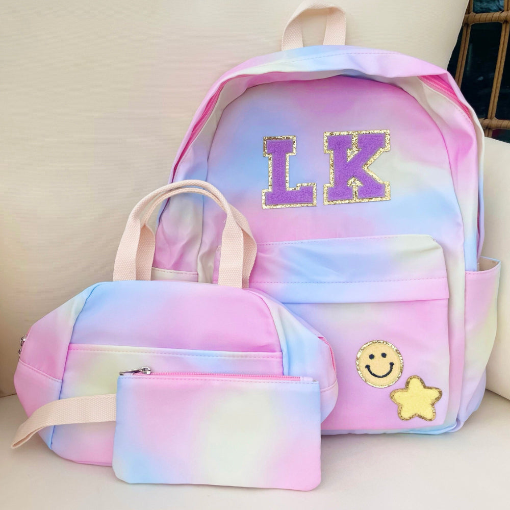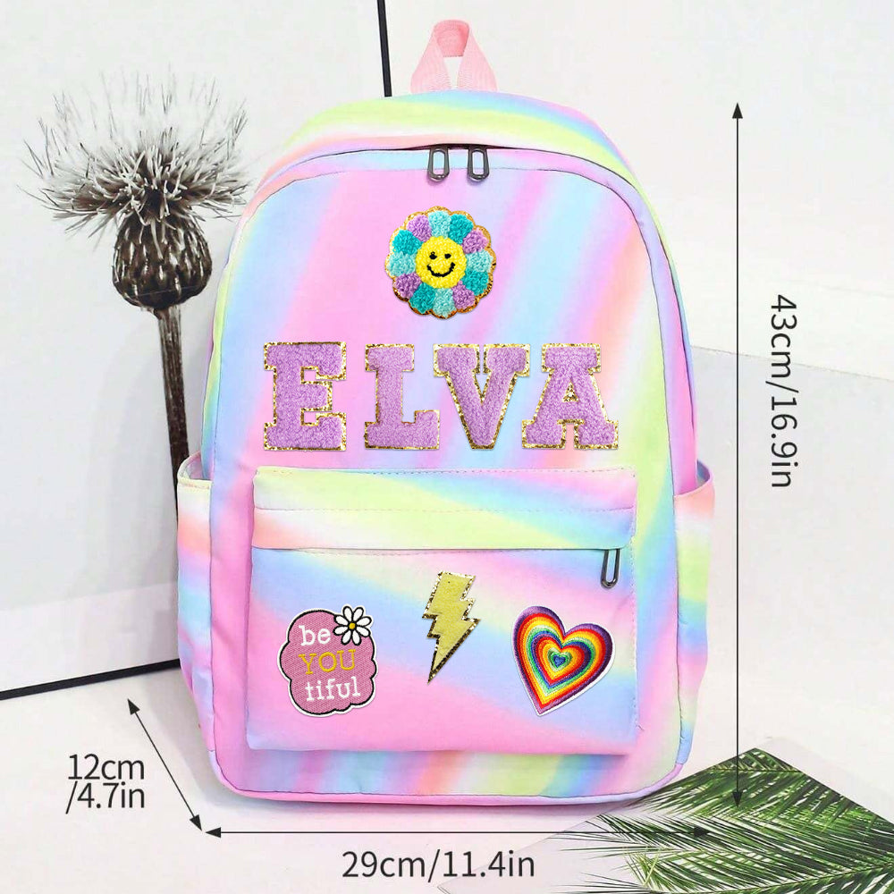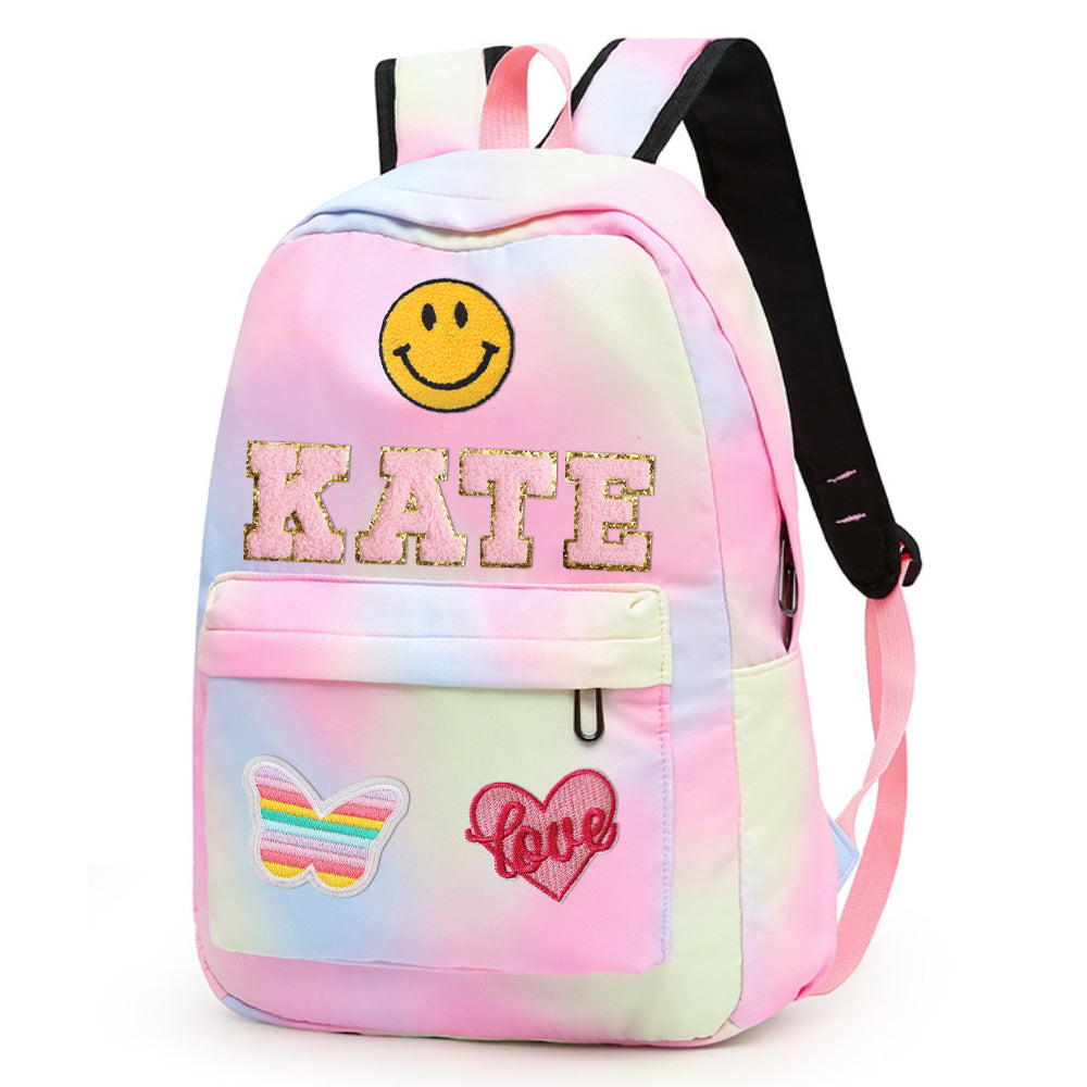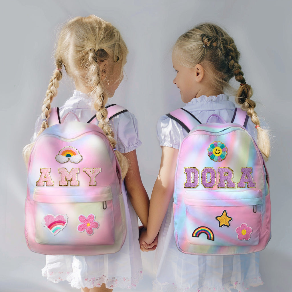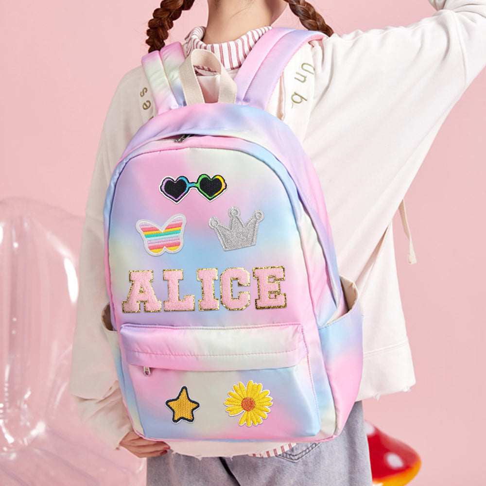 Welcome the new school year and let your kids show their personality and style by carrying a unique customized school bag! Not only is this bag colorful, but it also comes with a variety of personalized stickers, including cute smiley face flowers, lightning bolt patterns, and heart patterns, making each bag unique. The front of the book bag can also be customized with a name, making it easy for kids to find their own book bag.
