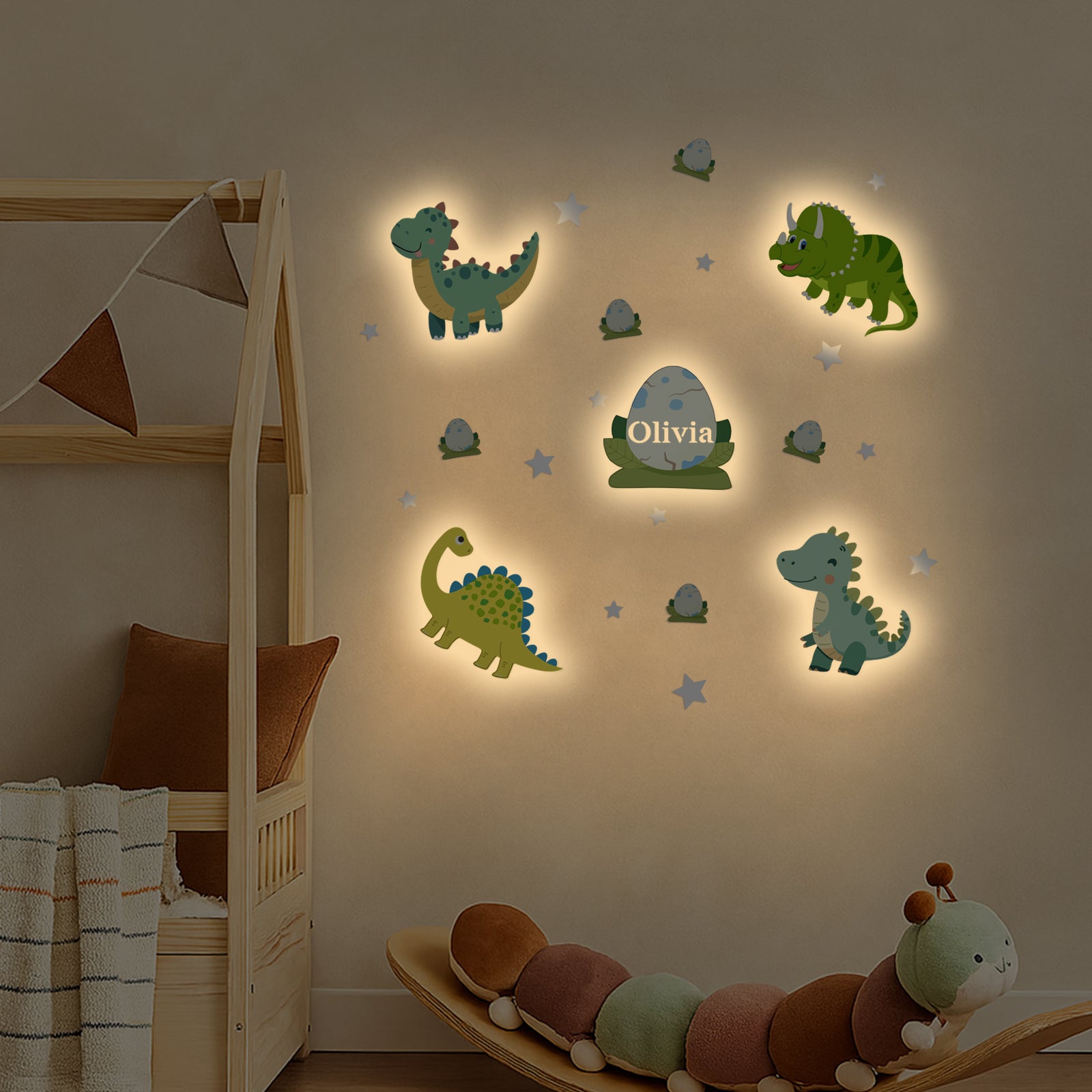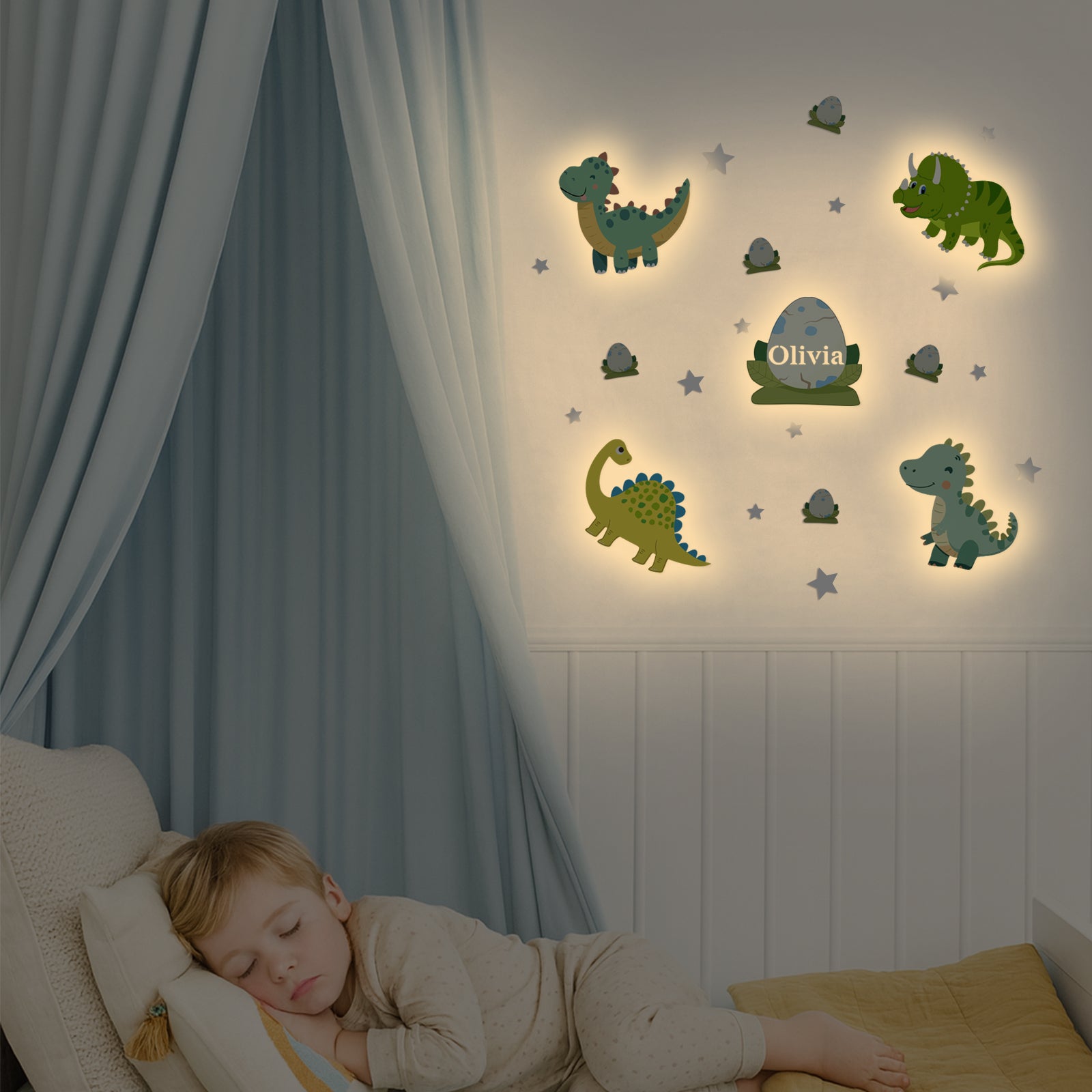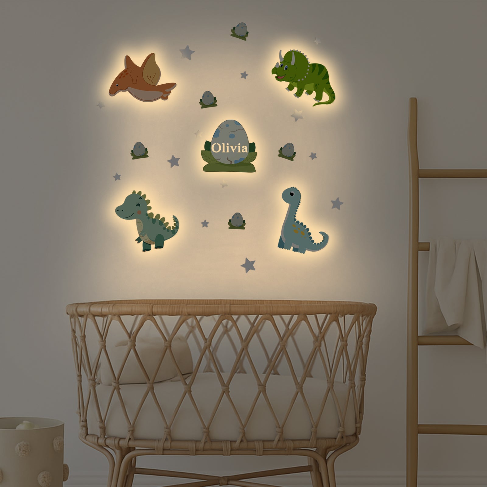 Personalised Wooden Baby's Room Wall Light Set-Dinosaur Theme
