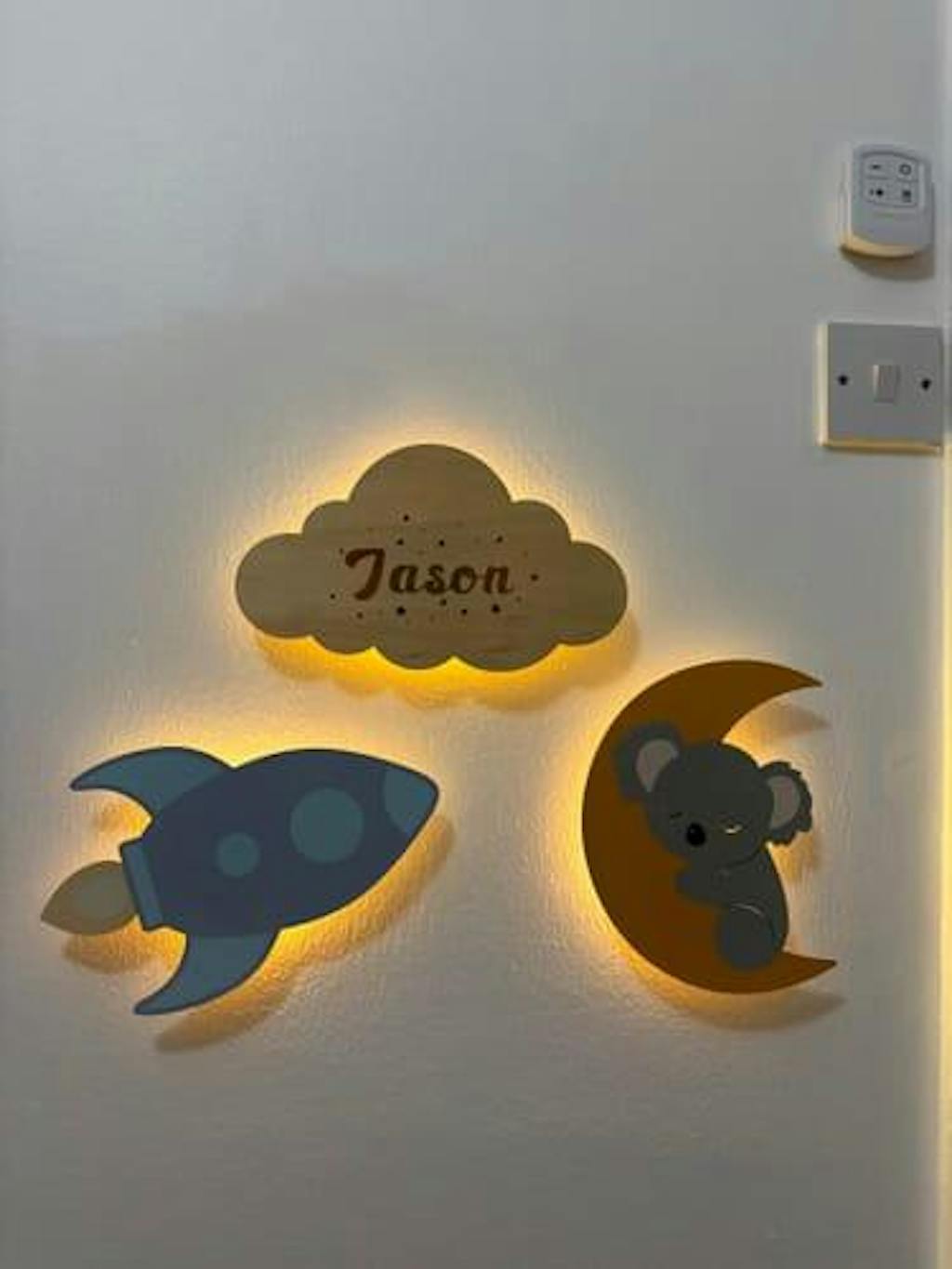 Personalised Wooden Baby's Room Wall Light Set-Grassland Theme