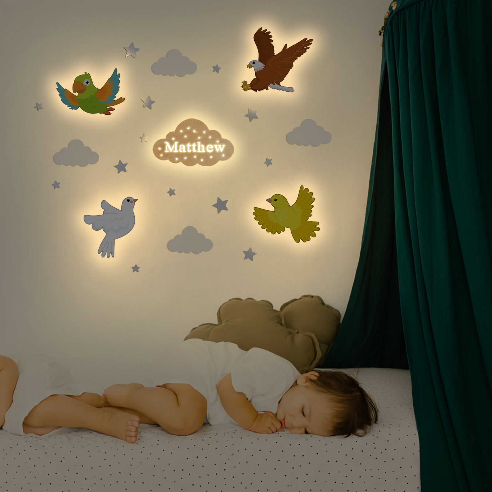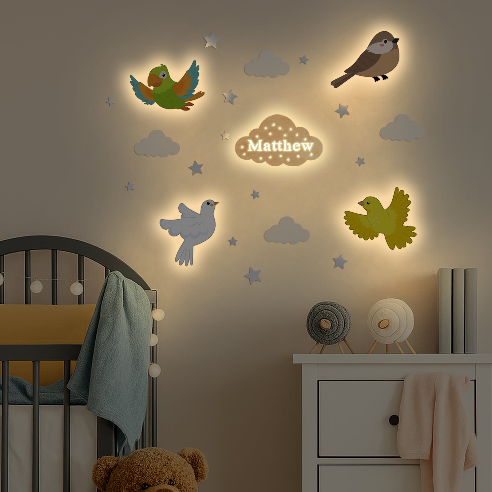Personalised Wooden Baby's Room Wall Light Set-Sky Animal Theme